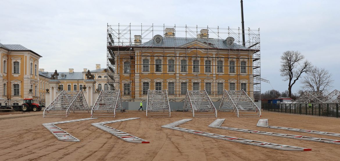 Die Arbeiten an der Dachkonstruktion und der Bedachung finden über der Gruppe der Paradesäle statt. Um die Sammlungsgegenstände vor den durch die Reparaturarbeiten erzeugten Vibrationen zu schützen, werden in den Räumen der betroffenen Schlosstrakte alle Kronleuchter abgenommen. Diese insgesamt 21 abgenommenen Kronleuchter werden in anderen Ausstellungsräumen des Museums angebracht und bieten Gästen eine wundervolle Möglichkeit, sie von einem anderen Blickpunkt aus zu betrachten. Im Goldenen Saal und im Weißen Saal befinden sich Porzellankabinette, in denen auf Konsolen 79 Porzellanvasen aus dem Fernen Osten stehen. Aus Sicherheitsgründen werden diese Sammlungsstücke aus der Museumsausstellung genommen und in Bestandsräume gebracht; somit sind die Porzellanvasen in diesem Zeitraum nicht zu sehen.
