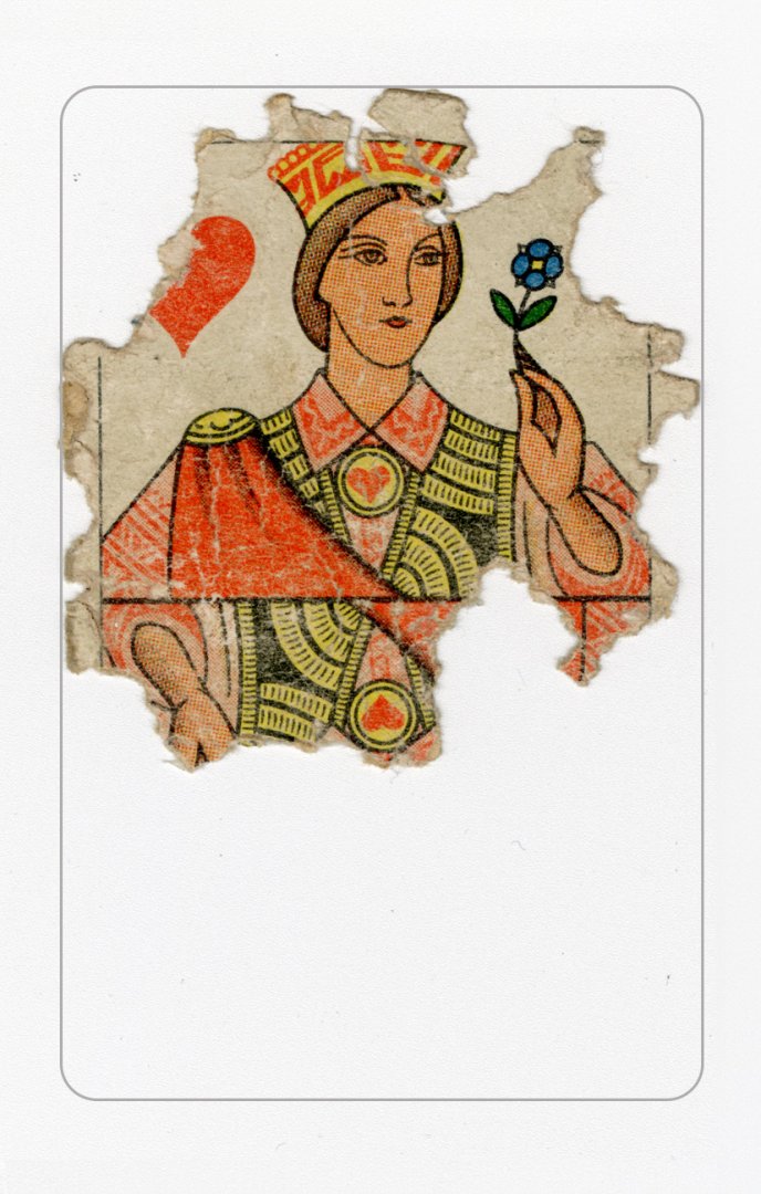 When cross-referencing and dating playing cards, the most important factor is the face side of the cards, which contains numbers and characters. Card fragments in the possession of the RPM contain Rachel or queen of diamonds, Cesar or king of diamonds, Hector or jack of diamonds and David or king of spades, Ogier the Dane or jack of spades, Alexander or king of clubs, La Hire (Joan of Arc’s military commander), as well as several numeral cards. David and La Hire form part of the exhibition on the Palace’s basement floor. There are also two fragments, one of which could be Charlemagne or the king of hearts, and the other belongs to one of the queens. Curiously, these cards have been torn up, although it is not known why.