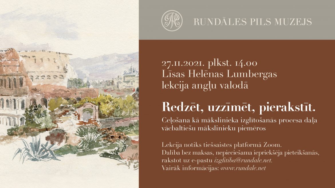 On Saturday, 27 November 2021, at 14.00 the Rundāle Palace Museum invites to an online lecture ‘Seeing, drawing, writing. Travelling as part of an artist’s education on the example of Baltic German artists’ by Estonian art historian Liisa-Helena Lumberg. This lecture will take place in connection with the exhibition ‘The Princess of Courland Travels. Fanny Biron’s watercolours and drawings’, which presents the work of Fanny Biron (1815–1888) – an amateur artist and the great granddaughter of the commissioner of the Rundāle Palace’s construction Duke Ernst Johann of Courland.