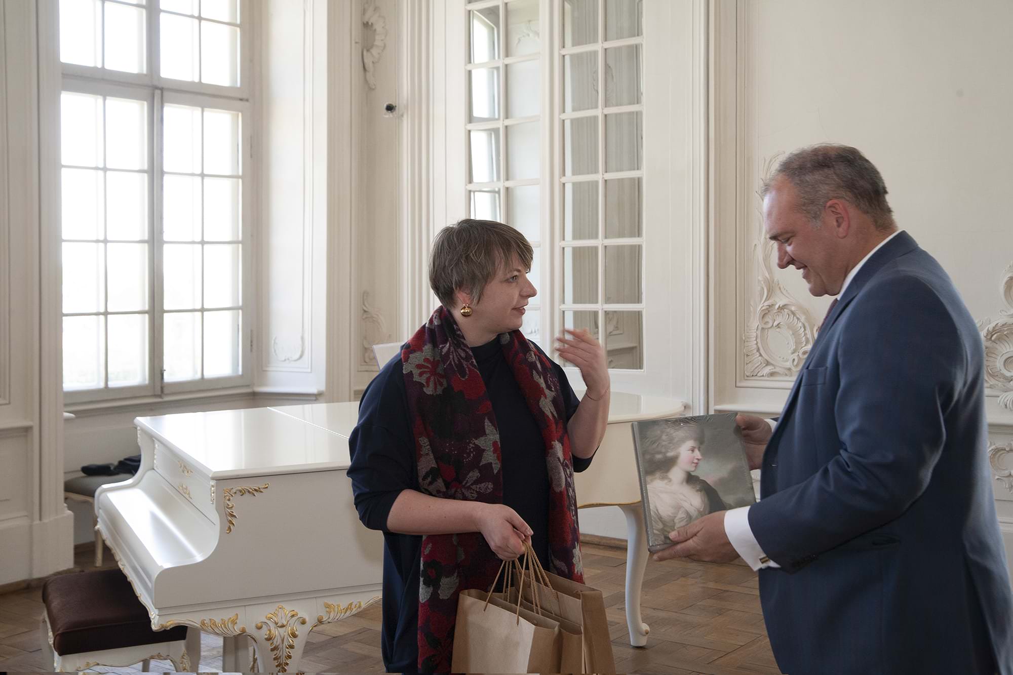 On 30th April students from the Basque Country in Spain visited Rundāle Palace as part of the Premio Renacimiento & Romanesque European Cultural Route XXI (Renaissance & Romanesque Award European Cultural Route XXI) programme to explore and develop the route. The aim of this trip – to prepare a qualitative tourist route that accentuates the diverse historical and cultural connections between European countries that link Spain and Portugal to the Nordic Countries. Latvia and Rundāle Palace had been included in this route for the first time. The student delegation was accompanied by the Director General of the organisation Don Alvaro Enrique de Villamor Soraluse, Duke of the Latin Empire, whose aunt Béatrice de Andia, a renowned personality in French culture, is a descendant of the House of Talleyrand. Following their initiative, a prayer service was held in the White Hall of Rundāle Palace to commemorate the sovereigns of the Duchy of Courland-Semigallia.