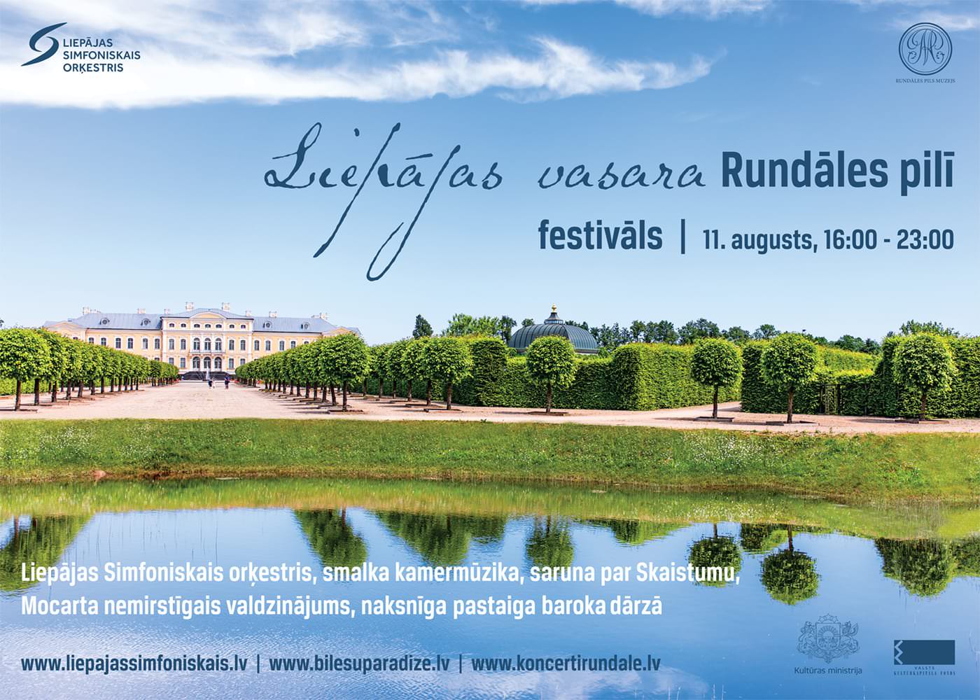 Liepājas Simfoniskā orķestra rīkotais mūzikas festivāls “Liepājas vasara” šogad pirmo reizi izskanēs arī ārpus Liepājas – Rundāles pilī un franču dārzā, kur 11. augustā būs baudāmi pieci muzikāli notikumi: