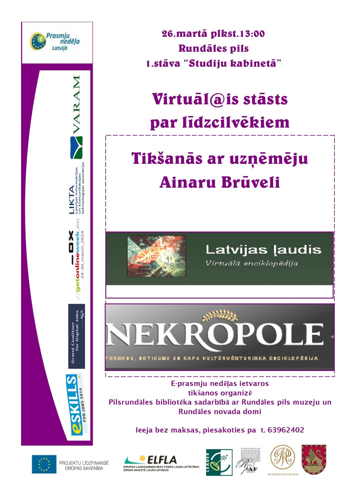 E-prasmju nedēļas ietvaros Pilsrundāles bibliotēka sadarbībā ar Rundāles pils muzeju un Rundāles novada domi piedāvā iespēju tikties ar  uzņēmēju Ainaru Brūveli 26.martā plkst. 13:00 Rundāles pils muzeja pirmā stāva studiju kabinetā.